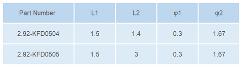 | 2.92-KFD0504 | Φ1=0.3mm,Φ2=1.67mm, L1=1.5mm,L2=1.4mm |