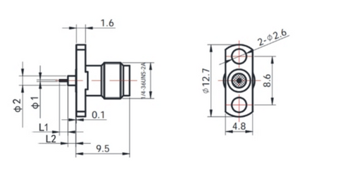 2.92mm Female Connector with 2-hole Flange | Hole Spacing 8.6 mm | Metal Through-plate | DC-40GHz
