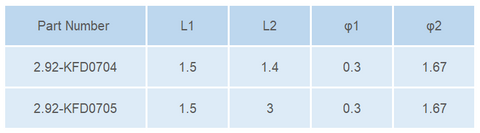 | 2.92-KFD0704 | Φ1=0.3mm,Φ2=1.67mm, L1=1.5mm,L2=1.4mm |