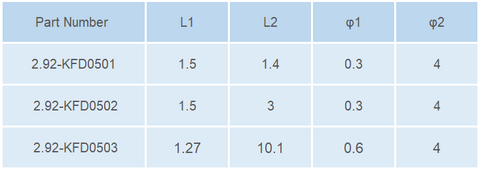| 2.92-KFD0501 | Φ1=0.3mm,Φ2=4mm, L1=1.5mm,L2=1.4mm |