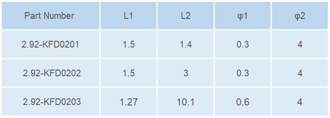 | 2.92-KFD0201 | Φ1=0.3mm,Φ2=4mm, L1=1.5mm,L2=1.4mm |