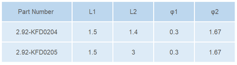 | 2.92-KFD0204 | Φ1=0.3mm,Φ2=1.67mm, L1=1.5mm,L2=1.4mm |