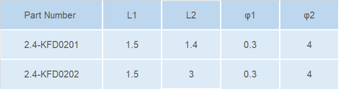 | 2.4-KFD0201 | Φ1=0.3mm,Φ2=4mm, L1=1.5mm,L2=1.4mm |
