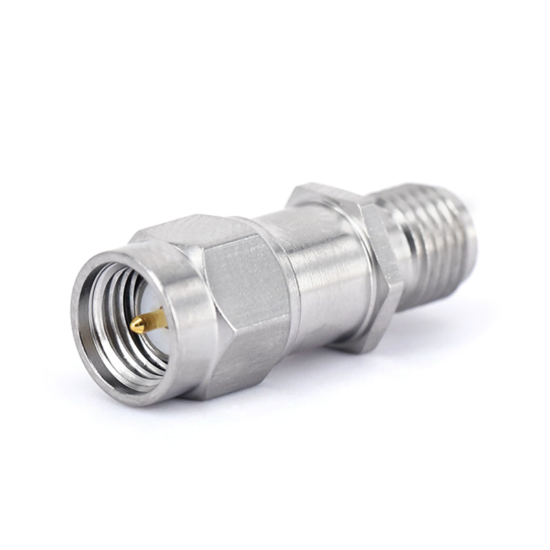 SMA Male to SMA Female Inner DC Block | 10 MHz to 18 GHz | 50V Max | Stainless Steel Body