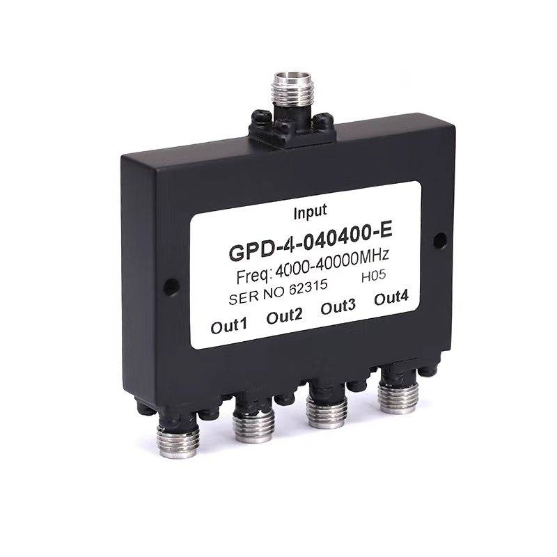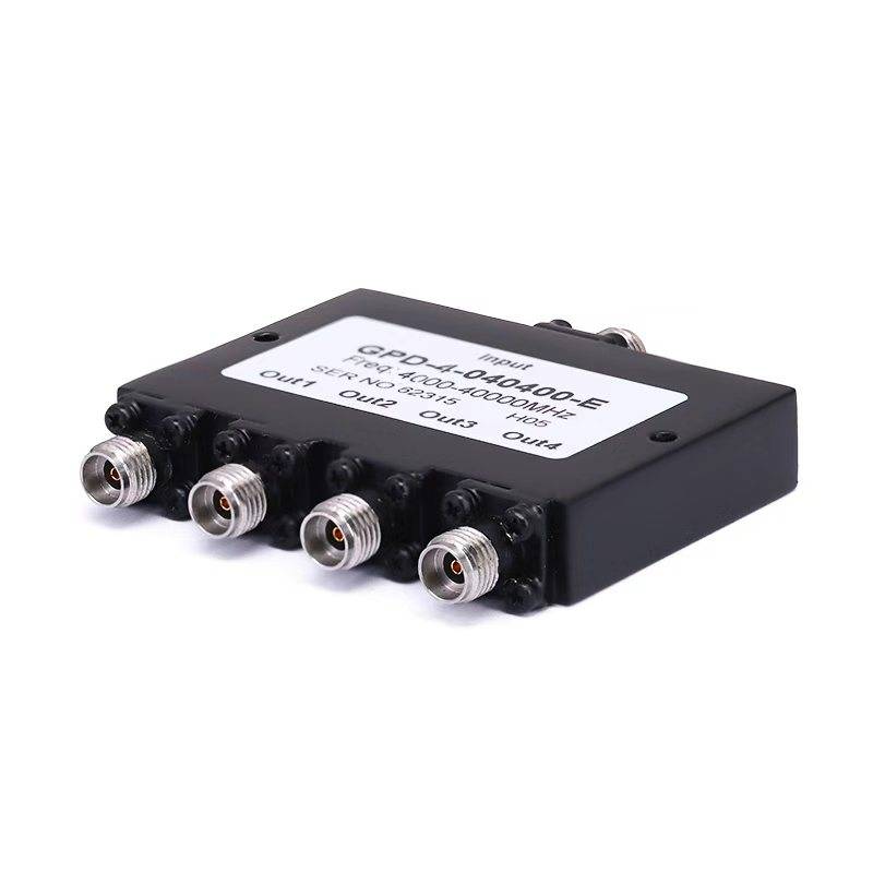 GPD-4-040400-E is a coaxial power divider that covers the frequency range from 4-40GHz. This power divider has a Aluminum housing material and ensures an excellent microwave performance with low insertion loss and VSWR of .This power divider is precisely manufactured to RF industries like military & space, RF communication, test & measurement and industrial applications..