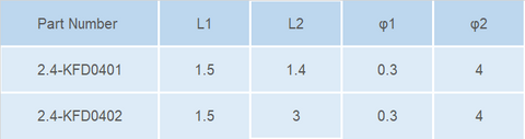 | 2.4-KFD0401 | Φ1=0.3mm,Φ2=4mm, L1=1.5mm,L2=1.4mm |