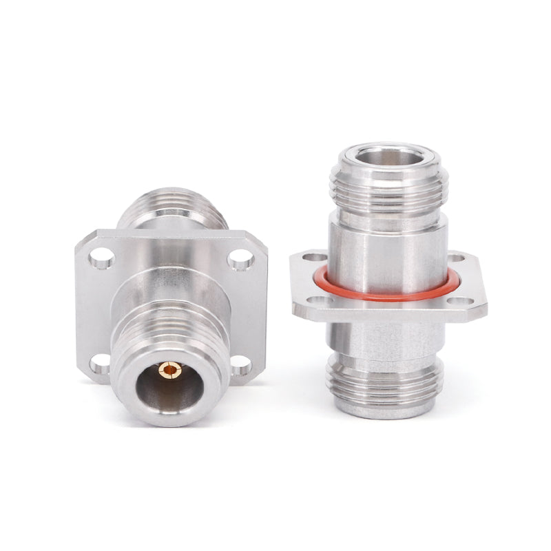 These are a group of N to N Adaptor with 4-hole flange. The flange size is 25.4mm x 25.4mm and the space of flange hole is 18.2mm x 18.2mm.