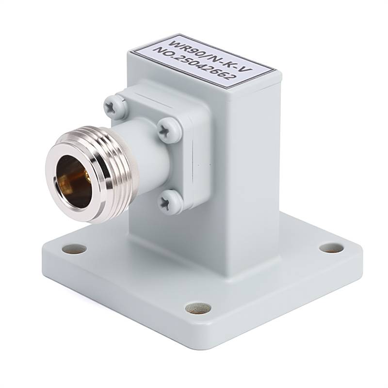 WR90/N-K-V is a WR-90 to N Female Right Angle Waveguide to Coax Adapters with FBP100 Flange, 8.2 - 12.4GHz waveguide to coax adapter that covers the frequency range from 8.2 - 12.4GHz. This waveguide to coax adapter has a Right Angle body style and ensures an excellent microwave performance with low insertion loss and VSWR of 1.25.This waveguide to coax adapter is precisely manufactured to RF industries like military & space, RF communication, test & measurement and industrial applications..